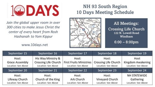 Please MARK YOUR CALENDARS: First Fruits Ministries will be hosting a 10 Days of Prayer/10 Days of Awe night of worship and prayer like we did last year on Sunday, Sept. 17 from 6-8 p.m. I would love it if you could all come to pray and worship with us and the many other Christians who will be present that night. This will be the day after Shabbat and Yom Teruah, so it is a significant part of the Days of Awe (introspection) between Yom Teruah and Yom Kippur, and an opportunity to share the heritage of God with other believers in humility with love. As an important aside, please note that Crossing Life Church, the location we will be meeting at, is the same church where there has been an ongoing, non-stop worship and prayer service 24/7 for several months and they will be continuing this through the 10 days of Awe.
